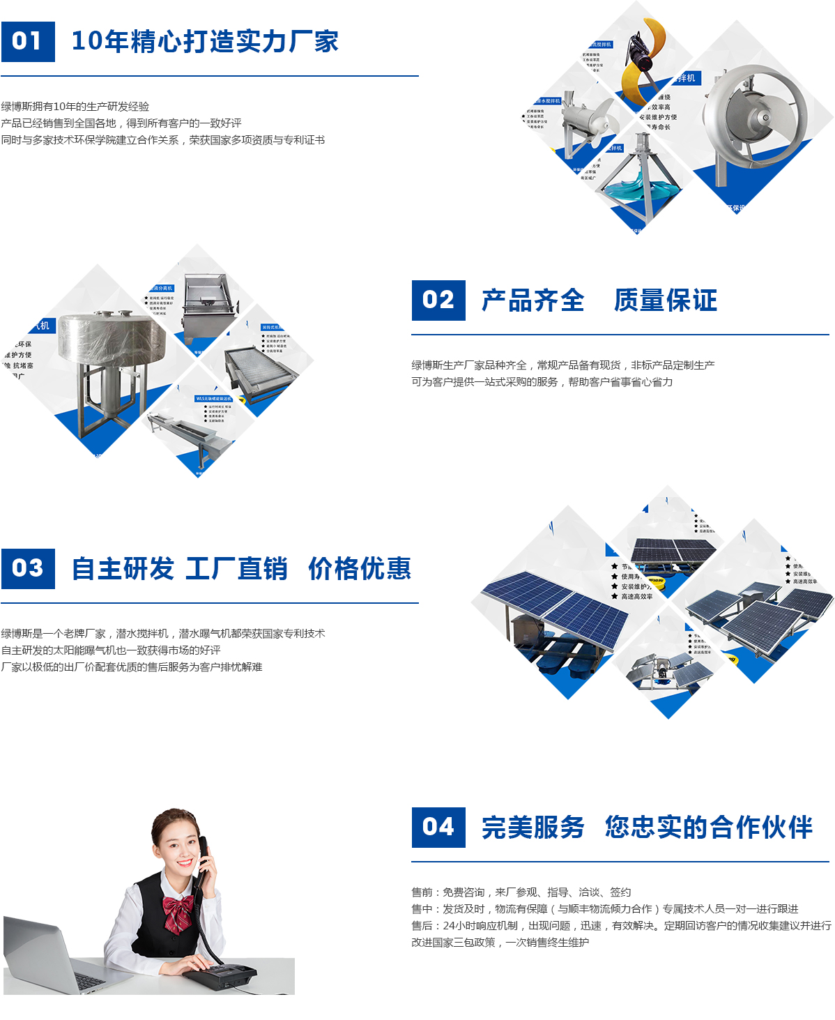 您好!歡迎訪問太陽能曝氣機-推流曝氣機-噴泉曝氣機-增氧機-解層曝氣機-江蘇綠博斯環保設備有限公司官網!